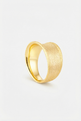 Quiet structure with presence. Designed for daily rotation, this wide band balances a sculptural profile with a restrained surface, offering a grounded look that reads intentional without excess. Worn solo, it holds its own; stacked, it adds calm contrast.