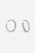 A rhythmic reinterpretation of the classic hoop. The circular form is broken into repeating raised segments, creating a sculptural outline that feels graphic on the ear while remaining restrained and wearable.