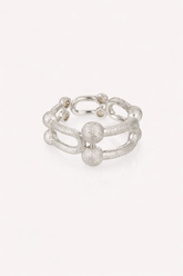 Everyday sculptural balance. This open band ring introduces a sense of structure through repetition and spacing, creating a form that feels architectural yet easy to wear. The rounded segments give the ring visual rhythm, making it stand out quietly when worn alone or paired with other pieces.